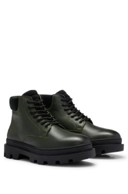 HUGO Grainedleather boots with padded logo collar